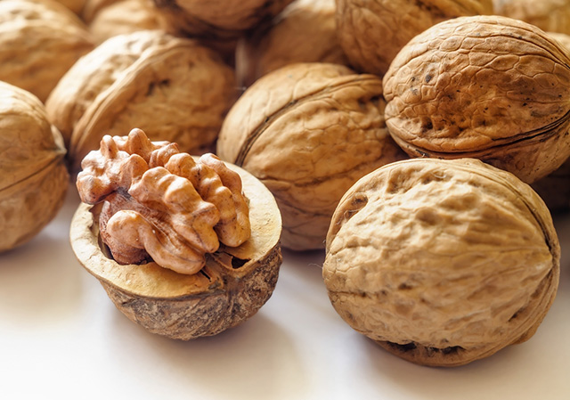 호두는 다불포화 지방산, 비타민 E, 엽산, 카로티노이드 등 뇌 건강을 지원하는 특정 영양소가 풍부합니다. 연구에 따르면 8주 동안 매일 60g의 호두를 먹은 사람들이 언어적 추리력을 이해하는 능력이 증진되는 것을 경험했다고 하며 견과류 섭취의 증가, 특히나 호두 섭취는 노인의 인지 능력을 증진시키고 알츠하이머병과 연관된 인지력 저하까지 지연시킬 수 있는 것이 호두 효능으로 나타났습니다.