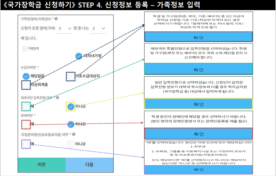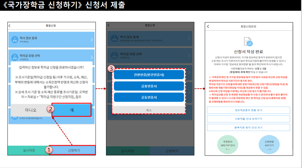※ 사전 준비물 : 본인 명의 전자서명수단(공동인증서, 금융인증서, 간편인증(민간인증서) 및 본인 명의 계좌번호, 부모의 주민번호(학생이 기혼자인 경우 배우자의 주민번호)
