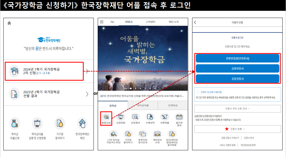 ★ 장학재단 통합신청 어플 접속 후 로그인(회원이 아닐 시 서비스 이용자 등록 필요)