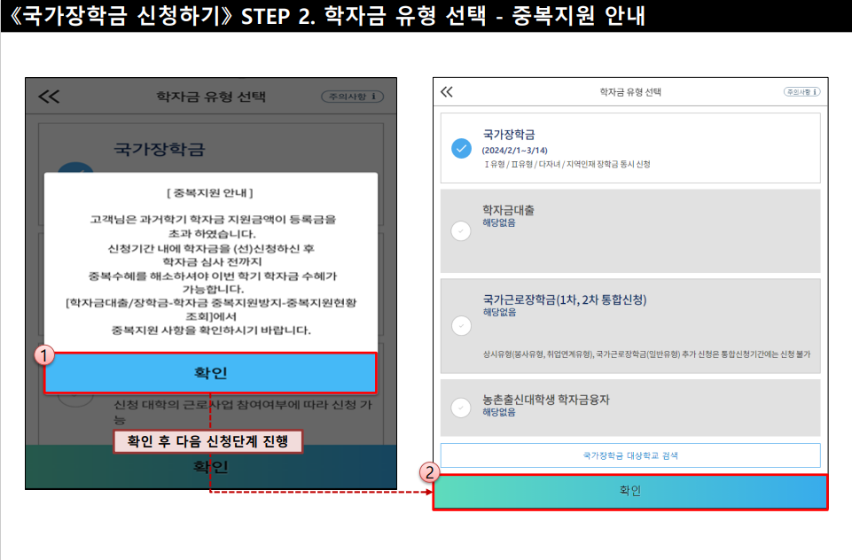 ※ 재학생은 국가장학금 1차 신청이 원칙 (단, 재학 중 2회에 한하여 구제신청 자동 적용 및 심사 가능)