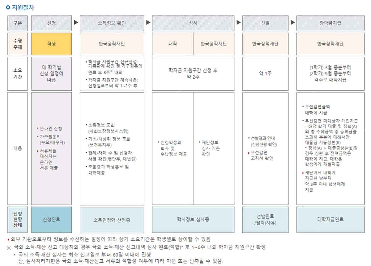 ※ 재학생은 국가장학금 1차 신청이 원칙 (단, 재학 중 2회에 한하여 구제신청 자동 적용 및 심사 가능)